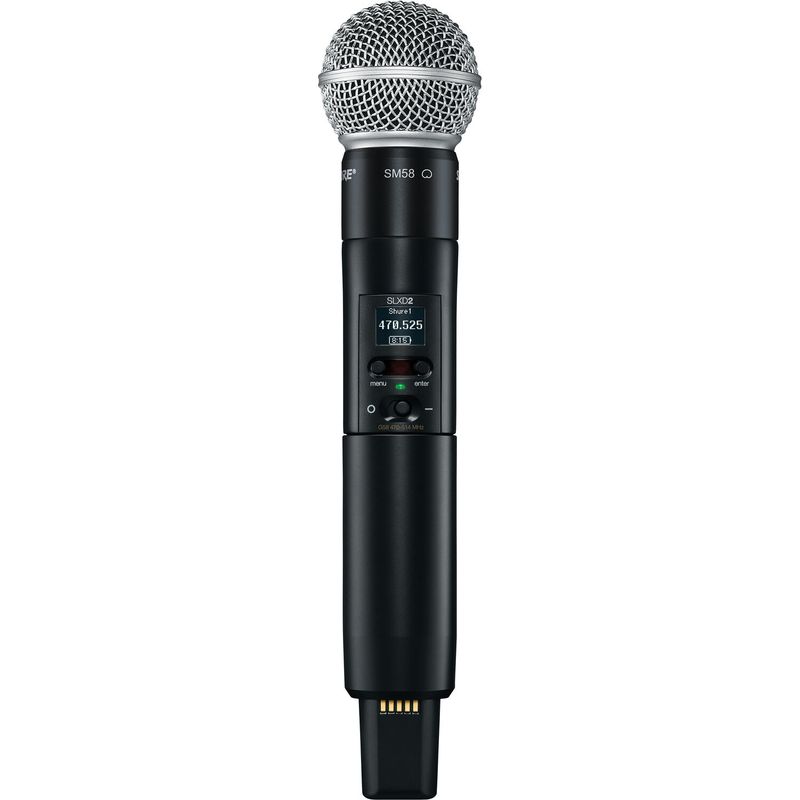 Especificaciones de Shure SLXD24D/SM58 Sistema de micrófono de mano digital de doble canal con cápsulas SM58 (H55: 514 a 558 MHz)