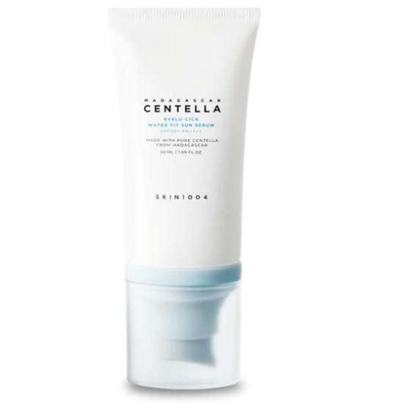 Madagascar Centella Hyalu-Cica Water-Fit Sun Serum es un protector solar ligero tipo sérum con SPF50+ PA++++. Su fórmula combina centella asiática y ácido hialurónico para calmar e hidratar la piel mientras la protege del sol. Se absorbe fácilmente sin dejar residuo blanco ni sensación pegajosa. Ideal para uso diario y todo tipo de piel, incluso sensible. Deja un acabado fresco y natural, perfecto bajo el maquillaje.