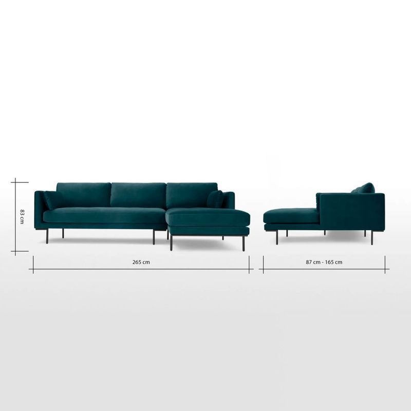 MueblesMuebles de SalaSofásSofá Esquinero con Chaise Longue a la Derecha Harlow Yolodecoro Azul Océano