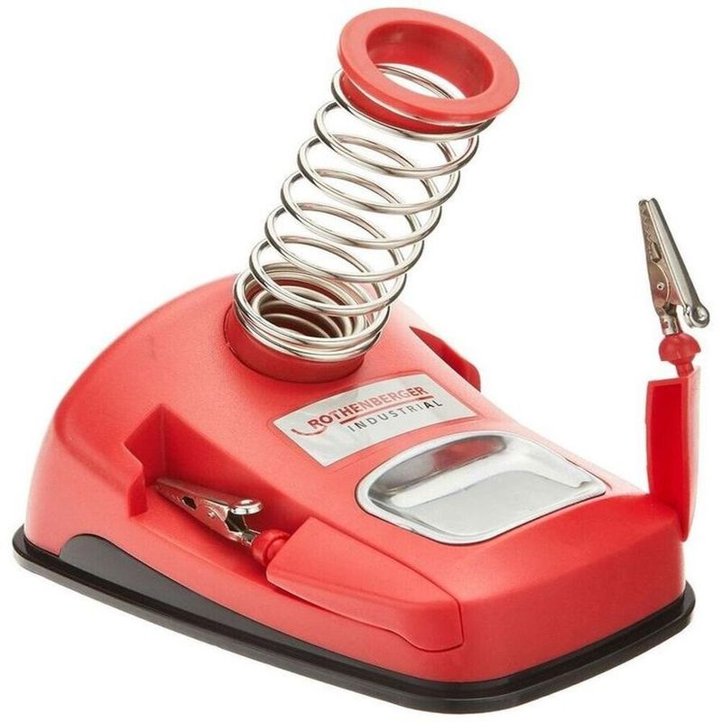 El set de soldador Rothenberger Industrial 1500000041 es la herramienta ideal para trabajos de precisión en electrónica, reparación de componentes, bricolaje o modelismo. Este equipo incluye una estación de soldado resistente, con soporte metálico, sistema de sujeción tipo "tercera mano", punta fina para trabajos delicados y un compartimento integrado para almacenar alambres de soldadura y otros accesorios pequeños.