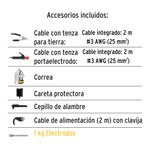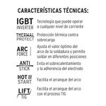 Caracteristicas: Ligera y compacta, más eficiente (mayor ciclo de trabajo) y con menor consumo eléctrico que una soldadora convencional Rango de corriente: 1 Fase (20 A CC - 110 A CD) | 2 Fases (20 A CC - 130 A CD) Sistema de adaptación automática BI-VOLTAJE 127-220 V, detecta y se adapta al voltaje de entrada, sin necesidad que el usuario cambie conectores o manipule controles Para procesos de soldaduras de electrodos revestido (SMAW) y tungsteno (TIG) Bornes de cambio rápido: 3/8" Especificaciones: Corriente máxima130 A Bornes3/8" Ciclo de trabajo60% (6 minutos de trabajo por 4 minutos de descanso) Alimentación1 FASE (127 V CA / 31 A / 50 - 60 Hz), 2 FASES (220 V CA / 24 A / 50 - 60 Hz) Voltaje de circuito abierto1 FASE (80 V CD), 2 FASES (70 V CD) Potencia1 FASE (3.9 kVA), 2 FASES (5.2 kVA) Rango de corriente1 FASE (20 A CC - 110 A CD), 2 FASES (20 A CC - 130 A CD) Tipos de electrodo6013, 6011 y 7018 Dimensiones (Base x Altura x Fondo)12 x 23 x 30 cm Peso3.3 kg Empaque individualCaja Incluye: Cable con tenaza para tierra 2 m, # 5 AWG (16 mm²) Cable con tenaza portaelectrodo 2 m, # 5 AWG (16 mm²) Careta protectora Cepillo de alambre Cable de alimentación con clavija 1 kg de Electrodos 1/8" E6013-4