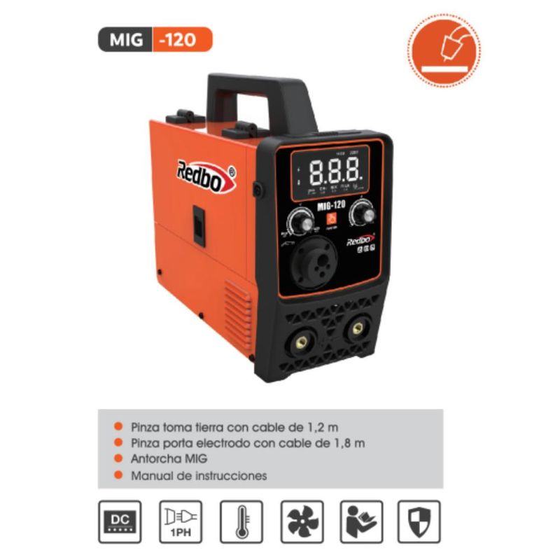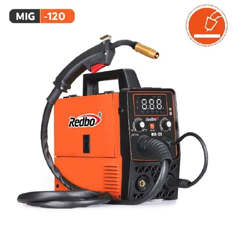 La soldadora Redbo MIG-120 es una soldadora profesional semi-automática, con función 3 en 1, ya sea para soldar con gas, sin gas(GASLESS), para soldar por arco manual (MMA), y para soldar con la función LIFT TIG (al raspado). El arco se inicia al tocar la placa soldada y el alambre de soldadura. Puede ser utilizada con alambres con gas y flux (sin gas). Es capaz de trabajar con todo tipo de acero al carbono normal, acero inoxidable u otros metales. Al ser de un tamaño compacto y ligero permite un transporte sin complicación. Posee display digital, control de un solo comando, para ajustar la corriente con precisión y concentrar mejor el arco. Al terminar, la máquina sigue soplando entre 3 a 5 segundos de forma automática, lo que permite una costura más perfecta. Implementa la máxima profundidad de soldadura de fusión contra placas medias y gruesas. La regulación de un solo comando permite que la operación sea fácil y eficiente.