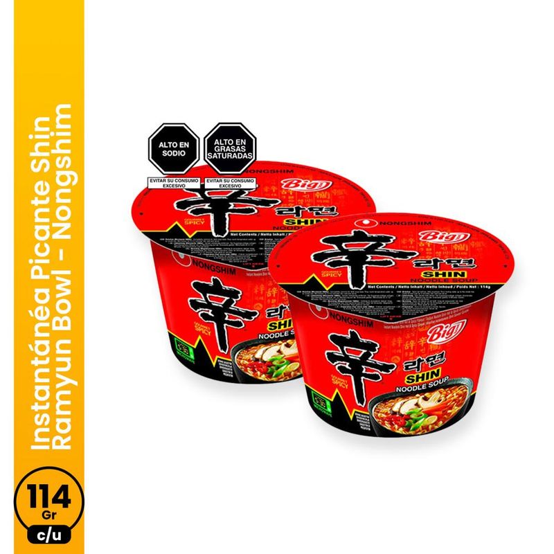 El Shin Ramyun Bowl es una sopa instantánea coreana de la marca Nongshim. conocida por su característico sabor picante. Presentado en tazón. combina fideos gruesos y un caldo especiado ideal para disfrutar en cualquier momento sin necesidad de usar ollas.
