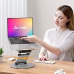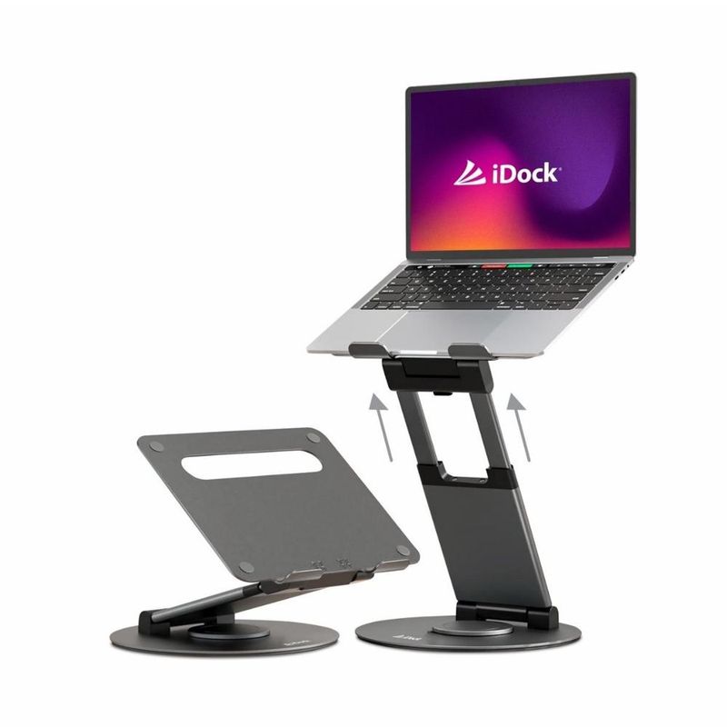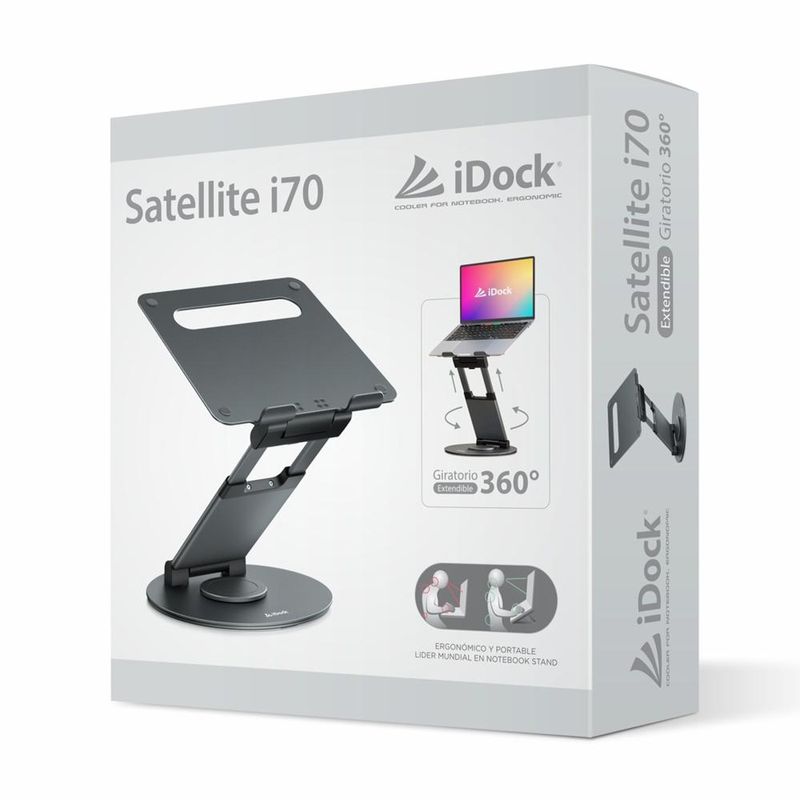 Este soporte iDock Satellite i70 con base giratorio de 360° está elaborado en aluminio resistente y el soporte antideslizante grueso, hace que su laptop sea más estable cuando la utiliza, con una elevación máxima de 50cm. Es compatible con laptops y tablets de 10" hasta 17". Ofrece un diseño ultra delgado y liviano, lo que asegura que puede ponerlo en su mochila y llevarlo a cualquier lugar que necesite. Su panel de aluminio tiene buena estabilidad y un mejor efecto de disipación del calor con diseño hueco. Además, cuenta con un ángulo ajustable y es totalmente plegable y portátil.