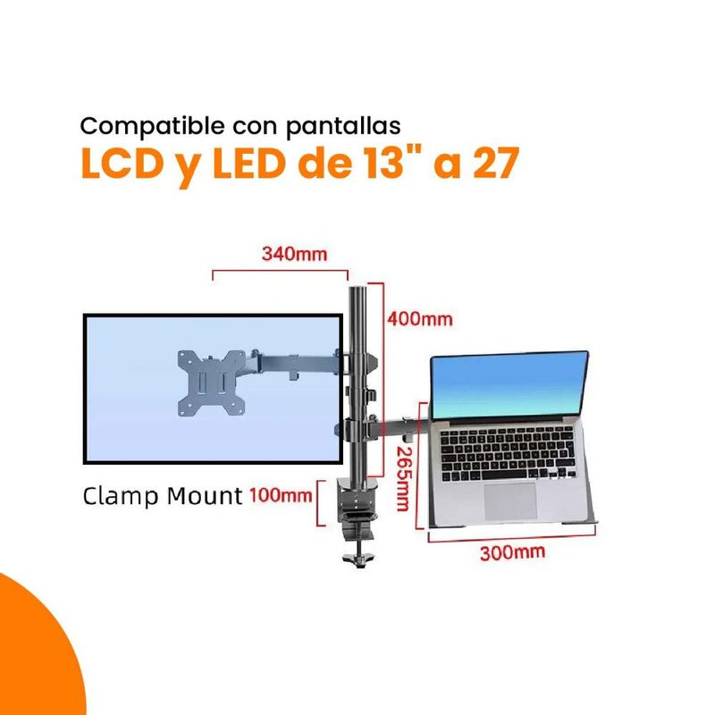• Apto para dos pantallas de hasta 27 pulgada