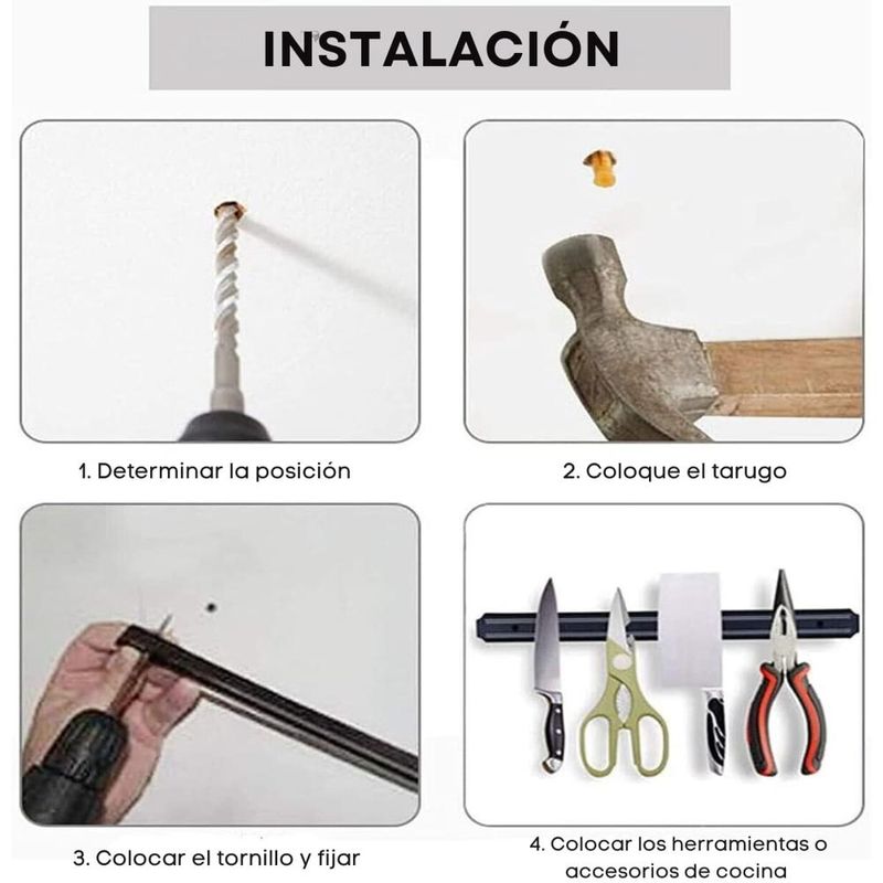 Eleva tu cocina a un nuevo nivel de organización y estilo con nuestro Soporte Magnético para Cuchillos y Utensilios. Este accesorio funcional no solo mantiene tus herramientas de cocina al alcance, sino que también agrega un toque moderno a tu espacio. Descubre la combinación perfecta de funcionalidad y estilo.