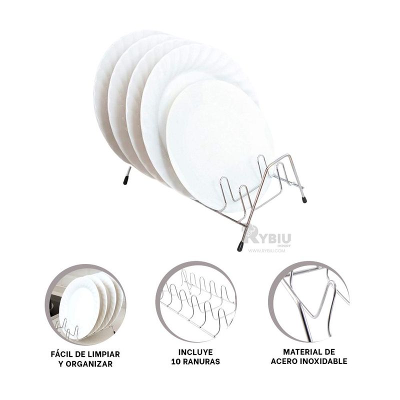 ¡Soporte para platos y tapas de acero inoxidable, el cual puede ser utilizado por personas que deseen organizar y almacenar platos! Tapas u otros utensilios de cocina de manera conveniente y eficiente. Para usarlo, simplemente coloque los platos y tapas en los compartimentos correspondientes según su tamaño y forma. Puede ser utilizado en cualquier cocina, ya sea en hogares, restaurantes, comedores o espacios de trabajo. Se recomienda limpiar el soporte regularmente con agua tibia y jabón para mantenerlo limpio y en buen estado. Es importante evitar sobrecargar el soporte con demasiados platos o tapas, ya que esto puede comprometer su estabilidad y durabilidad. Observaciones adicionales: las fotografías y descripción del producto son referenciales. Producto sujeto a stock de colores. Garantía: 7 días por daños de fábrica. El Modelo de los(el) regalo(s) está sujeto a disponibilidad de stock y colores. • Transportable: Si • Capacidad: 10 Ranuras • Material: Acero inoxidable • Modelo: CO29878 • Codigo: CO29878