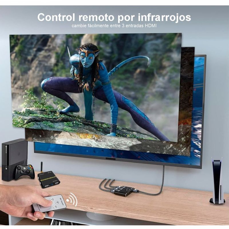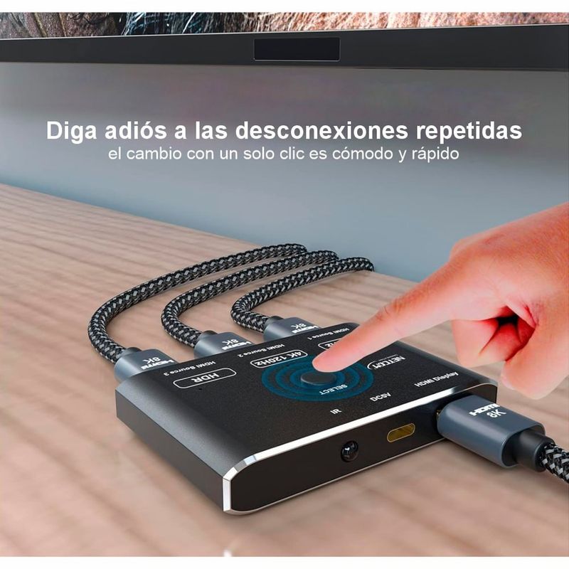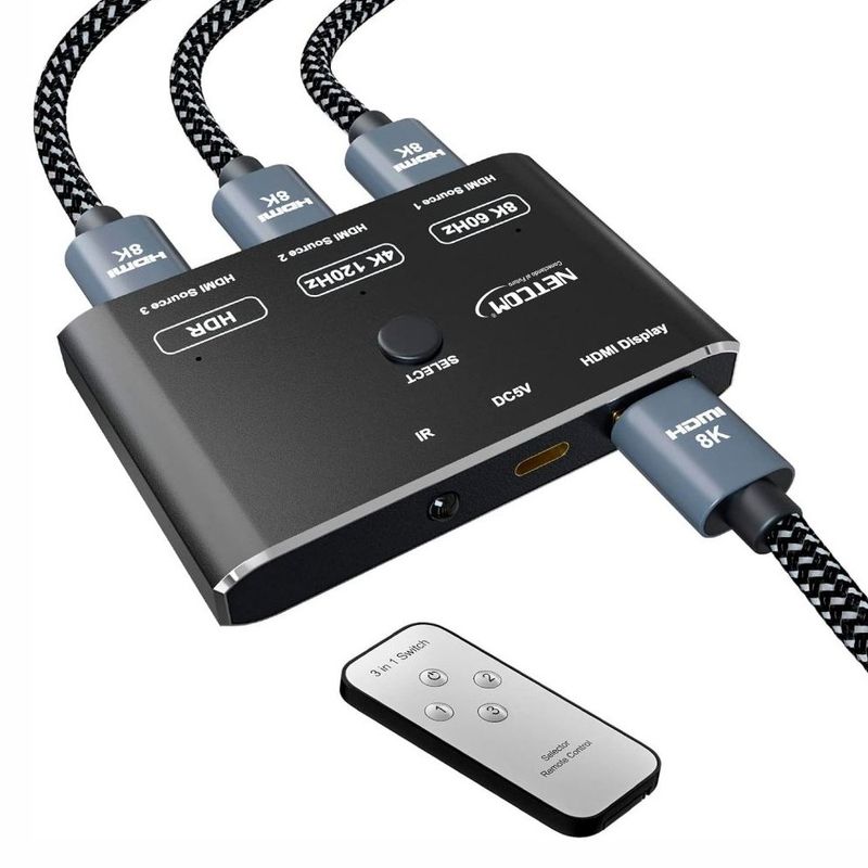 - 1 x Switch HDMI 2.1 de 3 Puertos NETCOM SW0831 (8K 60Hz, 4K 120Hz, HDR, 48Gbps)