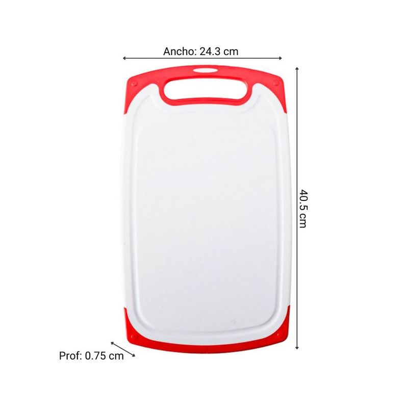 Tabla ideal para cortar y picar alimentos. Cuenta con alojamiento para colgar y canales antiderrames.