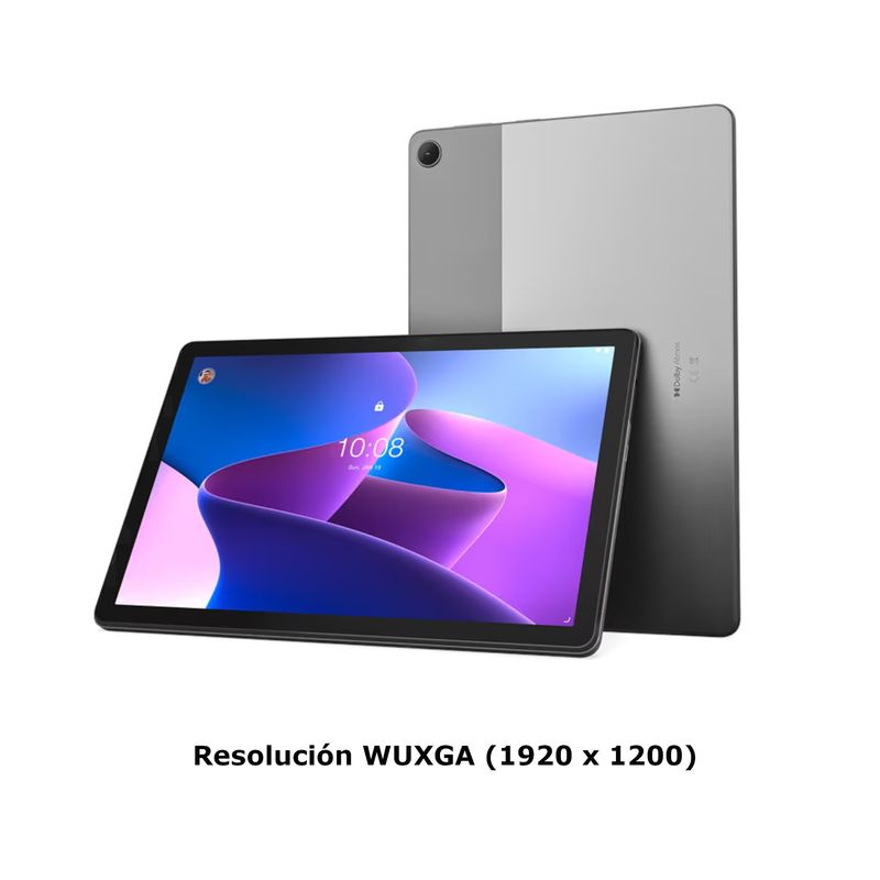 La Tab M10 tiene un aspecto moderno y depurado que la hace destacar. Es portátil y ligera, con un peso menor a los 500gr, un resistente chasis de aluminio y un atractivo color Gris Tormenta (Storm Grey) en dos tonos.