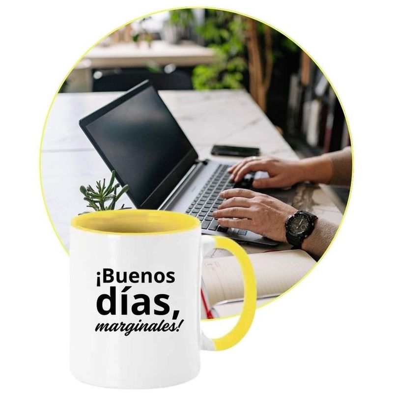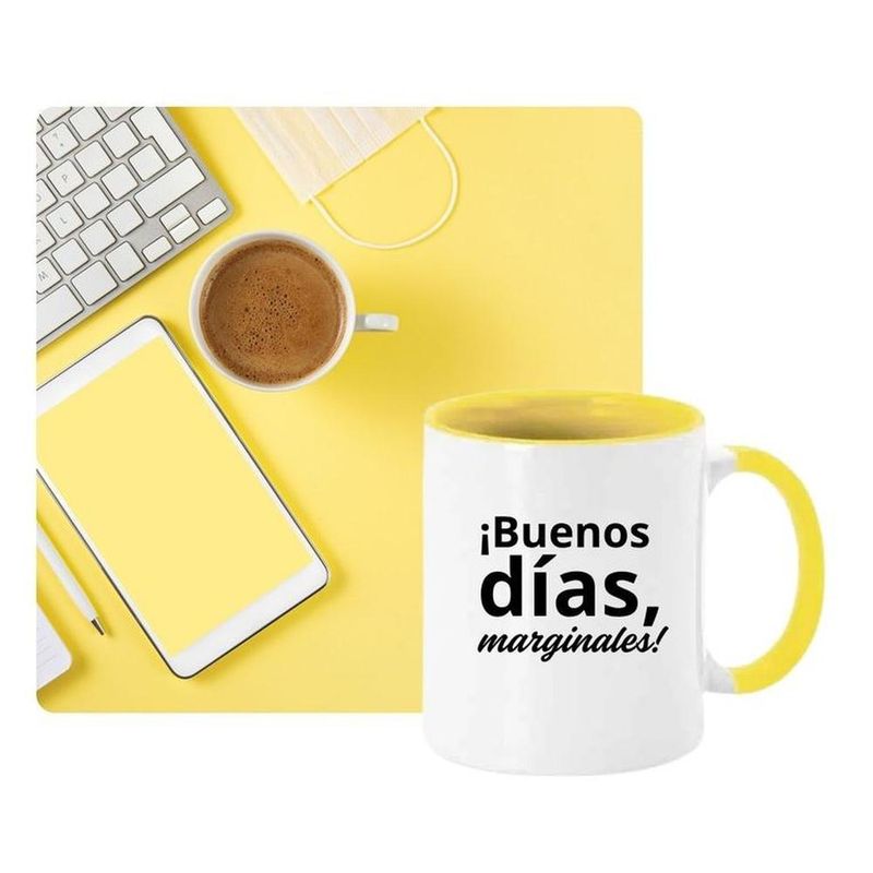 Taza mug diseño "Buenos días Marginales" con asa e interior amarillo