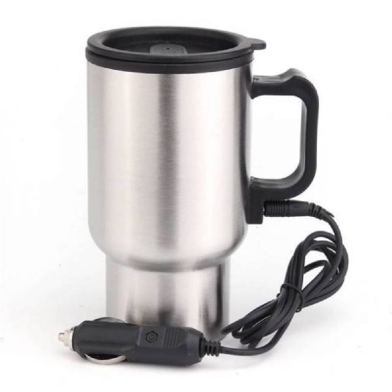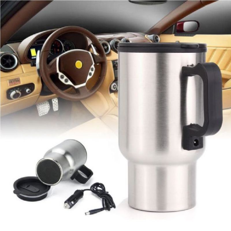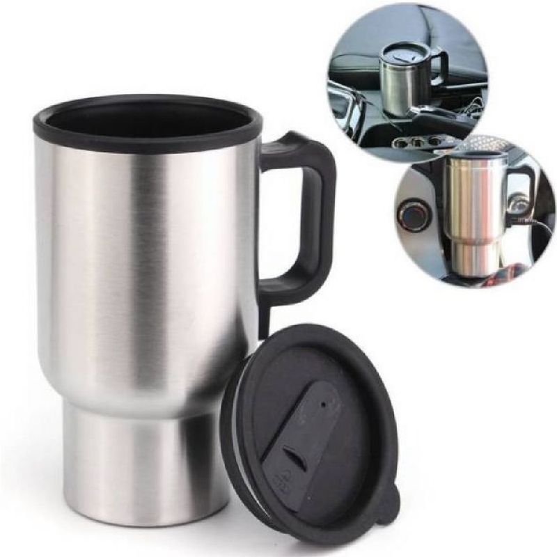 Esta copa de acero inoxidable se enchufa en el encendedor de su coche y mantiene una temperatura de 65 ° C – mantiene su té o café caliente y es potable, mientras que usted está en el viaje.