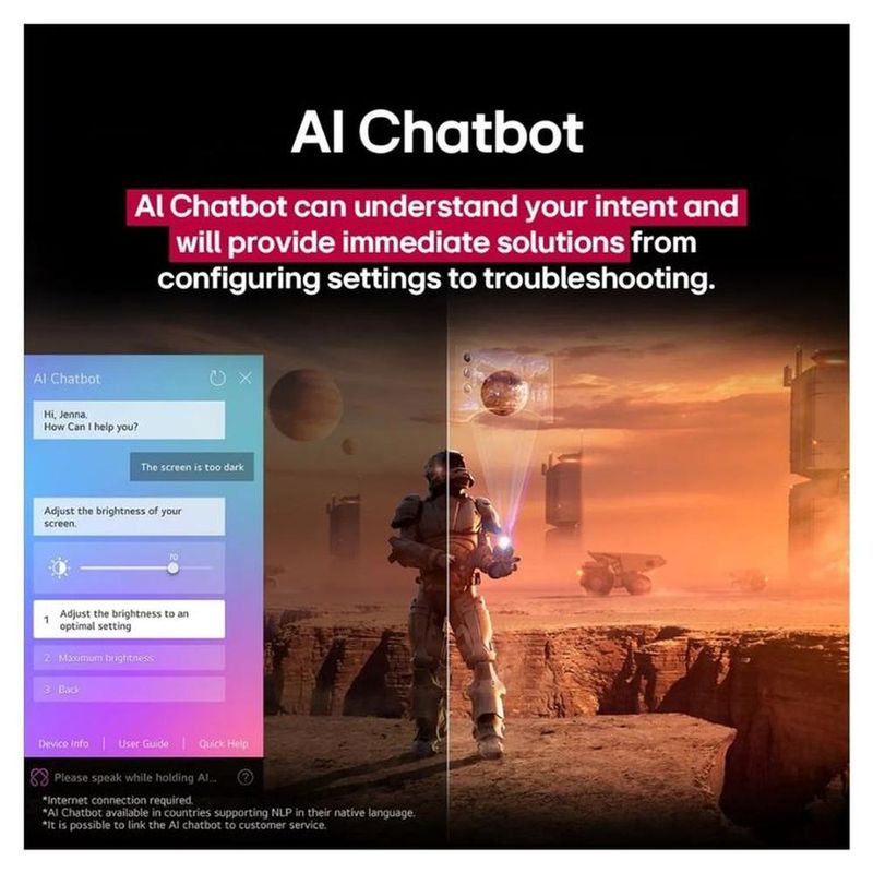 Vive la experiencia cinematográfica en tu hogar con el LG UHD 4K ThinQ AI. Disfruta imágenes más nítidas, colores vibrantes y sonido envolvente gracias a su procesador α7 AI 4K Gen 8 y su HDR10/HLG, que optimizan cada escena.