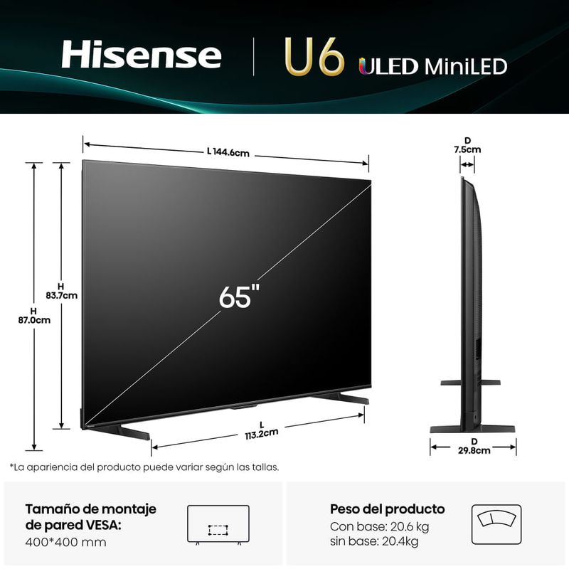 En Real Plaza tenemos para ti lo último en Tecnología, Televisor Hisense 65" 65U6QV ULED MINILED 4K UHD .Adquiérelo solo en realplaza.com ¡Ingresa aquí!