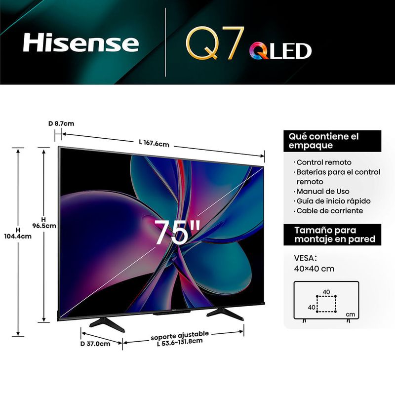 Encuentra lo mejor en Electro para renovar tu hogar con Televisor Hisense 75" 75Q7QG QLED 4K Google TV .Adquiérelo solo en realplaza.com ¡Ingresa aquí!