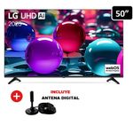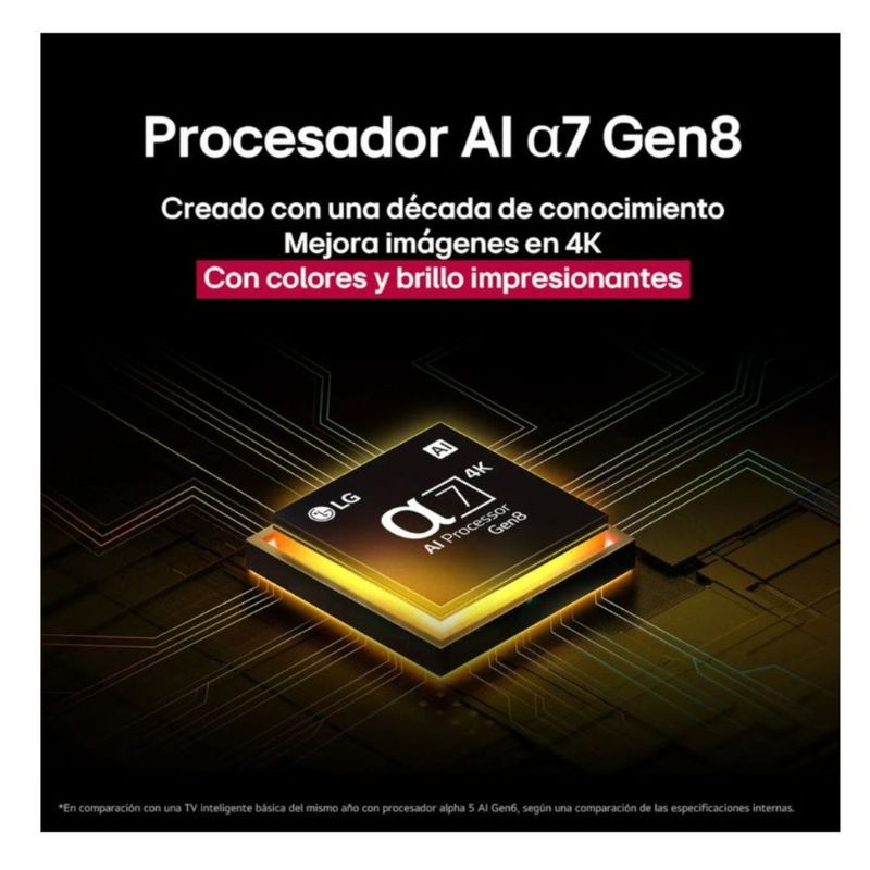 El LG 50UA7300 es un Smart TV de 50 pulgadas con resolución 4K UHD que ofrece una experiencia visual nítida y vibrante. Incorpora el procesador α7 AI que optimiza la calidad de imagen y sonido, y es compatible con tecnología HDR10 Pro. Funciona con el sistema operativo webOS y cuenta con la plataforma de inteligencia artificial ThinQ AI, que permite controlar el televisor con comandos de voz y gestionar otros dispositivos del hogar inteligente. Su diseño elegante se complementa con un control remoto Magic Remote (incluido o adaptable, según la versión), que facilita la navegación a través de las aplicaciones y servicios de streaming.