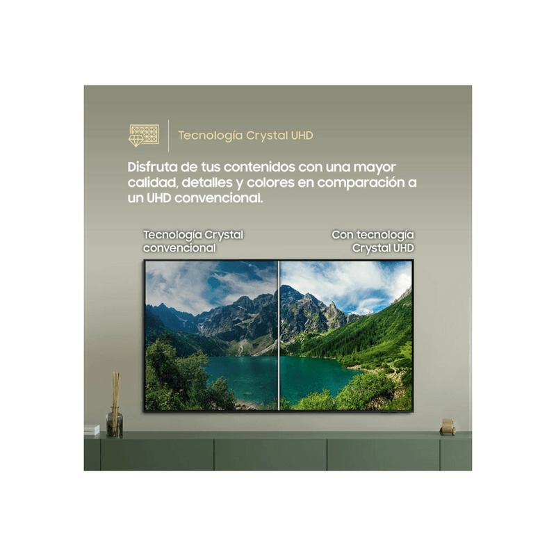 Televisor Smart TV 65" Crystal UHD Negro Samsung UN65U8000FGXPE ahora con este televisor distingue los pequeños detalles en cada escena. La resolución UHD 4K tiene 4 veces más píxeles que la resolución FHD regular, lo que crea imágenes nítidas y ultrarrealistas. Con inspiración en el diseño aeronáutico, este TV cuenta con un cuerpo metálico de lujo. Se utiliza una sola lámina de metal para crear el bisel delgado, lo que permite una experiencia verdaderamente inmersiva. Tu privacidad está segura en los Samsung TV. Los datos confidenciales como las contraseñas están protegidos, los dispositivos de la IoT conectados se monitorean y las aplicaciones y sitios maliciosos se bloquean automáticamente. Además, el equipo de seguridad de Samsung ayuda a mantener tu TV seguro con actualizaciones constantes. Con un Smart Hub integrado, tu TV puede conectarse y controlar dispositivos inteligentes, incluso aquellos que requieren compatibilidad con Matter y HCA. También puedes recibir notificaciones sobre tus dispositivos directamente desde la pantalla, incluida una vista de mapa 3D que muestra todo el sistema de hogar inteligente de un vistazo.