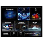 -Este modelo utiliza la tecnología QD-Mini LED de TCL, que combina puntos cuánticos y retroiluminación Mini LED para un mayor brillo, mejor contraste y colores más vivos, acercándose a la calidad OLED pero con mayor durabilidad y brillo máximo.