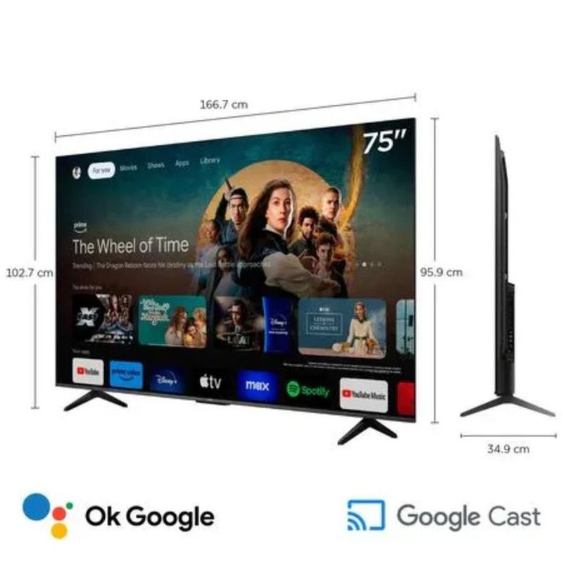 Con el TCL 75T6C, disfruta una experiencia cinematográfica desde casa. Este Smart TV QLED de 75 pulgadas con resolución 4K UHD (3840 x 2160) y sistema operativo Google TV con Android 12, está diseñado para ofrecer imágenes vibrantes, colores reales y navegación fluida.