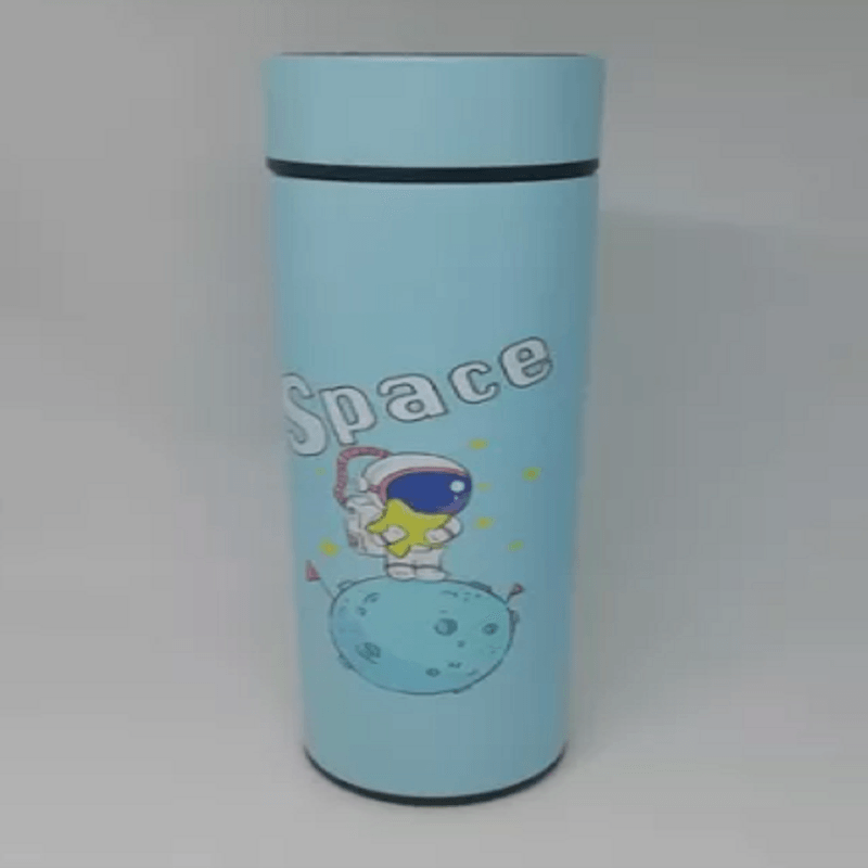 Termo Inteligente Mide Temperatura Acero Inoxidable Modelos Color Astronauta Azul. Este termo de acero inoxidable tiene una capacidad de 500 mililitros y es de calidad premium. Puede conservar bebidas frías y calientes hasta 8 horas gracias a su calidad de acero.