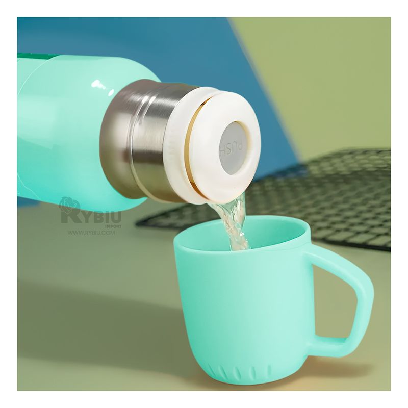 Con este termo de acero un atractivo color verde agua con 3 tazas. Con este producto tus bebidas permanecerán más tiempo caliente y lista para tomar, también si te gustan las bebidas frías este producto es ideal para ti. Gracias a su diseño inteligente lo puedes transportar a cualquier parte, ya sea a tu oficina, durante tus caminatas, al momento de hacer deporte al aire libre e incluyo llevarlo al gimnasio para llevar tu proteína, el termo cuenta con 3 tazas, perfecto para compartir y disfrutar tu bebida con tus amigos. Su material de acero lo hace duradero. Observaciones adicionales: las fotografías y descripción del producto son referenciales. Producto sujeto a stock de colores. Garantía: 7 días por daños de fábrica. El Modelo de los(el) regalo(s) está sujeto a disponibilidad de stock y colores.