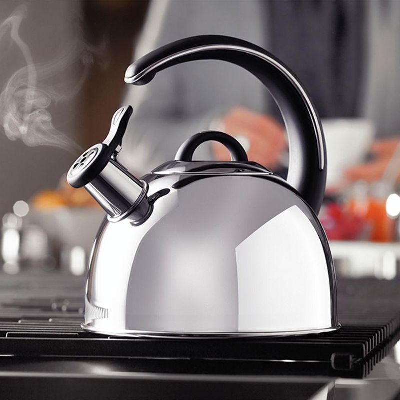 Su silbato incorporado te avisa justo en el momento en que el agua alcanza la ebullición, y su mango ergonómico con acabado negro asegura un agarre cómodo y seguro.