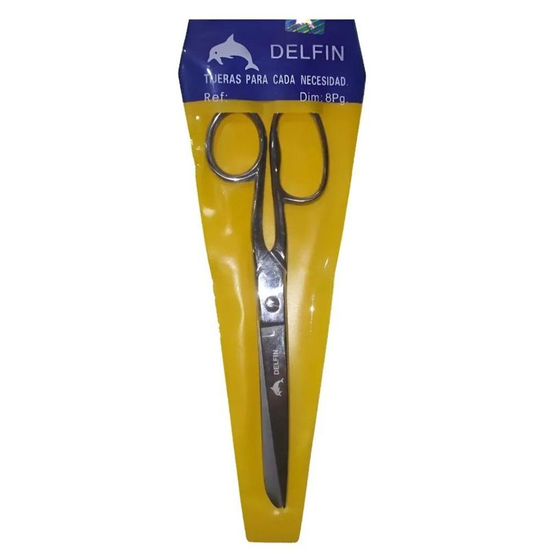 Tijera de metal Delfin Nro. 8 para papel, tela CARACTERISTICAS: Marca: Delfin Tejera de metal 8 Pulgadas medidas: 7.5 x 22cm peso: 100gr.