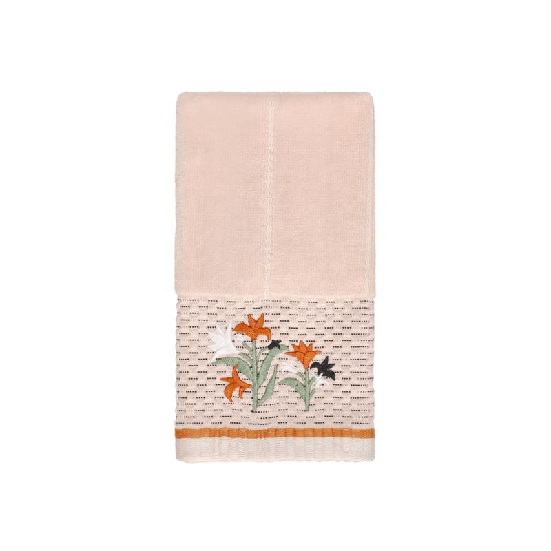 Toalla de mano de algodón con detalles bordados. Pertenece a la Colección Boró.