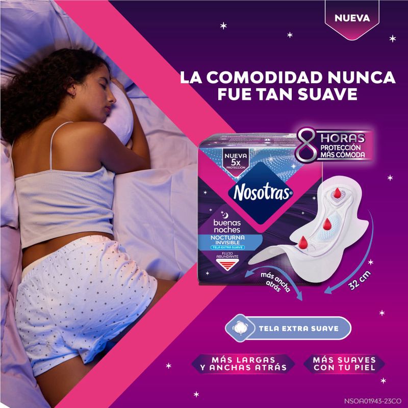 Salud y BienestarProtección FemeninaToallas HigiénicasToallas Higiénicas NOSOTRAS Buenas Noches Invisible Paquete 24un