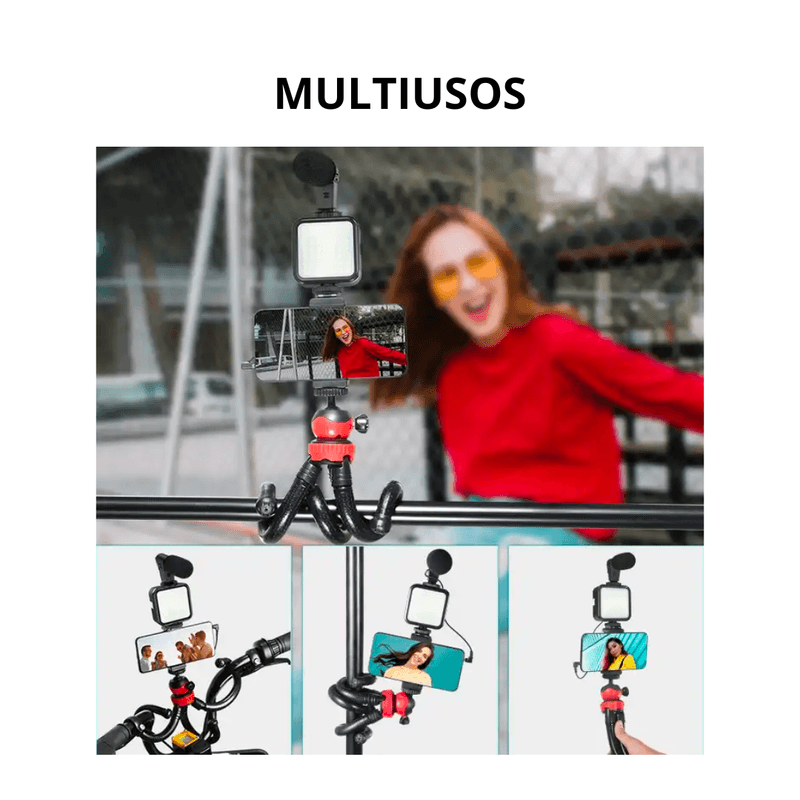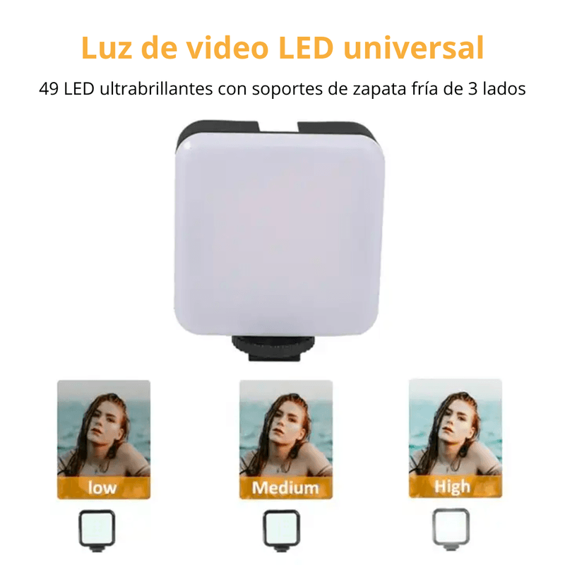 1. Micrófono + Luz de bolsillo + clip para teléfono móvil + trípode de diamante negro + cable de datos