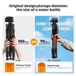 - * 【Eje ajustable】Extremadamente suave. Una vez abierto el trípode, se puede elevar la altura aflojando el control del eje. El gancho inferior del eje central permite colgar otros objetos, como fundas para cámaras, para mayor estabilidad.
