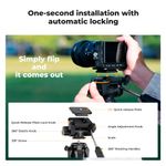 - * 【Estructura de Triángulo Compuesto】El trípode es más estable al fotografiar en exteriores. El cabezal soporta hasta 4 kg, admite una rotación horizontal de 360°, ángulo de inclinación ajustable de +100°/-70° y la placa de liberación rápida permite fotografiar horizontalmente, lo que permite fotografiar desde múltiples ángulos.