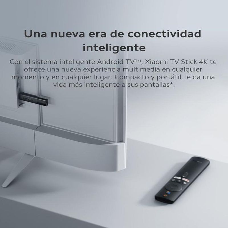 Xiaomi Mi Stick TV 4K es la evolución del pequeño stick de la marca XIAOMI. ahora, te permitirá ver imágenes a 4K y 30 fps. Convertirá tu viejo televisor en una Smart TV con lo que reproducirás contenido en streaming y jugarás a los videojuegos que más te gustan. Con un diseño minimalista y de dimensiones reducidas, es uno de los modelos más fáciles de transportar. Sólo métetelo al bolsillo y llévalo al piso de tu amigo o a la casa de la playa. Android TV 11 con calidad 4K , ahora, vamos con su utilidad principal. Con el Xiaomi Mi Stick TV 4K podrás tener acceso directo al contenido en streaming de tus plataformas favoritas, e incluso vienen preinstalados Amazon Prime Video y Netflix. Además, incluye la Google Play Store para que descargues las aplicaciones que usas, desde Youtube a Spotify. Todo ello movido por el sistema operativo Android TV 11, que potencia su rendimiento. Y cuenta con ventajas visuales y auditivas como la compatibilidad con HDR10, HDR10+, HLG, y Dolby Atmos. Videojuegos, Chromecast y Google Assistant Como ya te veníamos diciendo, la Google Play Store te permite descargar tus juegos favoritos, para jugar. Su conexión Bluetooth 5.0 te permitirá conectarle un Xiaomi Gamepad o un Xiaomi Mi Portable Mouse y que tengas un mejor control en cada partida. Viene con Chromecast para que puedas mantener en comunicación tu smartphone y tu Mi Stick 4K y enviar información de uno a otro. Además, posee tecnología DLNA y Miracast. Por último, dentro de la caja encontrarás un mando con control por voz. Sólo con decir ‘OK, Google’ despertarás al asistente y, mientras estás tirado en el sofá, le pedirás que quieres que te ponga. Fácil y rápido.