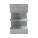 Ambienta tu hogar con nuestros muebles de melamina de 18 mm, fabricados por trabajadores peruanos que aportan calidad y elegancia a cada pieza. El Velador Shanks cuenta con un ancho de 40 cm, alto de 65 cm y una profundidad de 35 cm. Está hecho en melamina de 18 mm y viene en color gris. No necesitas armarlo, nosotros lo hacemos por ti. *No incluye accesorios mostrados. *No incluye instalación. Cuenta con garantía de 3 meses por defecto. Renueva tu espacio con el Velador Shanks, que combina un estilo moderno con la practicidad que todos buscamos hoy en día. Ideal para decorar y hacer que tu ambiente luzca increíble. #Melamina #niños #casa #hogar #juegos