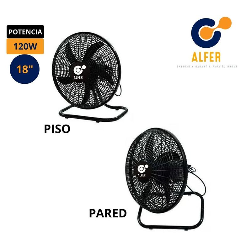 Ventilador Alfer 3 en 1 De 18″ 120 Watts Negro ALFER Escapa de esos largos días de calor que puede llegar a ser bastante incomodo en el verano. Gracias a este potente y práctico ventilador podrás lograr un ambiente fresco y agradable dentro de los ambientes de tu hogar. Gracias al constante cambio climático es indispensable contar en el hogar y/o en el centro laboral con un ventilador de calidad que haga de nuestros días más cómodos y frescos. El práctico producto, ventilador 3 en 1 cumple con los requerimientos de calidad. Su sistema giratorio lateral y su resistente motor que cuenta con una potencia de 120 watts, te garantizan la mejor de las experiencias en cuanto a mantener temperaturas en los ambientes donde pasas gran parte de tu tiempo. Su gran tecnología y diseño serán tus aliados Fabricado con materiales de calidad. Especificaciones: - Marca ALFER - Modelo ALFER-002 - 3 EN 1 (Mesa, Pared, Pedestal) - Motor super resistente con una potencia de 200 watts - 5 aspas de plástico que reduce los niveles de ruido - Con selector 3 velocidades - Sistema de retro ventilación - 220V -60Hz - Sistema giratorio lateral 180° - Motor super resistente con una potencia de 120 watts - Altura ajustable - Cable vulcanizado