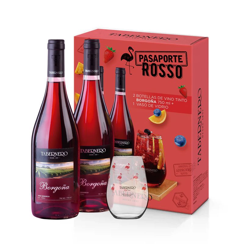 Vino Tinto TABERNERO Borgoña Semiseco Botella 750ml Pack 2un