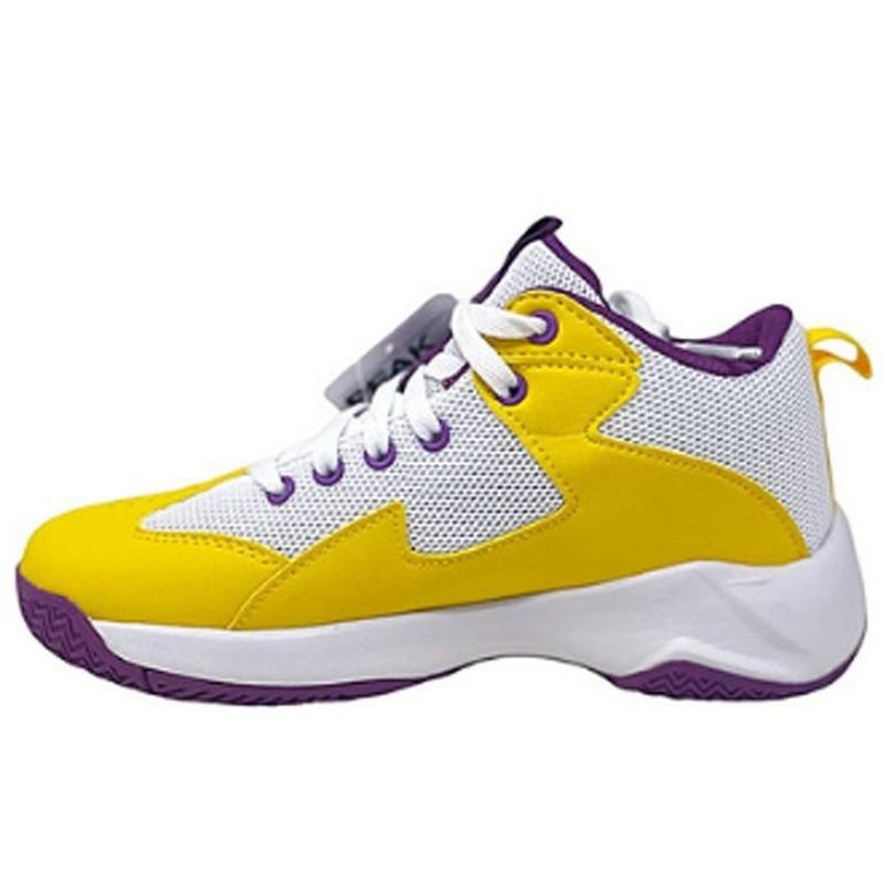 Estas zapatillas de baloncesto para niños/as están inspiradas en los vibrantes colores del equipo de la NBA Los Angeles Lakers. Diseñadas con la pasión del juego en mente, estas zapatillas ofrecen comodidad y estilo, permitiendo que los pequeños fanáticos lleven consigo el espíritu de su equipo favorito en la cancha. Con una combinación audaz de colores emblemáticos, estas zapatillas son la elección perfecta para los jóvenes jugadores/as que sueñan con brillar en la cancha como sus héroes de la NBA.