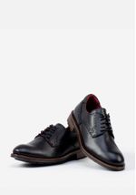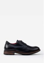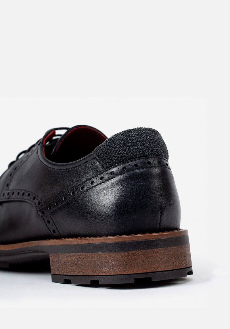 Zapatos casuales estilo derby de cuero grabado con detalles perforados.